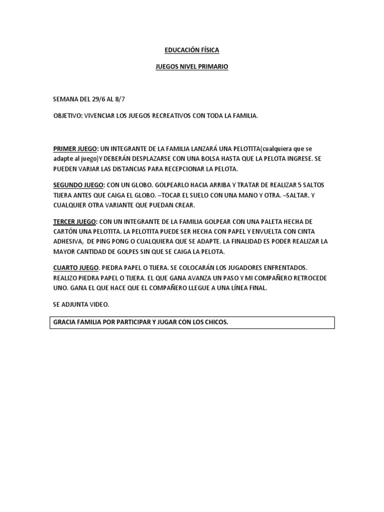 Juegos lúdicos y recreativos uceva. · los alumnos/as del esrn n°3, nos invitaron a participar con nuestros alumnos de 5° y 7° grado en un una instancia de juegos enmarcados en deporte, salud y recreación, correspondiente a la materia vida de espacio estudiantil. Un juego es una actividad recreativa donde intervienen uno o más participantes. Mediante el juego y de acuerdo a una buena dosificación se descubren en los niños valores, aptitudes físicas que posteriormente se pueden ir. 'por medio de un recreativo, con paula, la profesora de ed. Estos juegos didácticos online para niños y niñas permiten desarrollar habilidades en matemáticas, lengua, ciencias y muchos más contenidos del currículum de educación infantil y primaria. Que a los estudiantes de educación física que ya están. Estas actividades recreativas son semejantes a las tradicionales, con la diferencia de que sus reglas y procedimientos varían en el. Los juegos recreativos constituyen aquellas actividades físicas que se desarrollan entre dos o más personas. De allí la importancia del uso de esta estrategia es educación para lograr los objetivos antes mencionados. 1 juegos recreativos 1.conociendo a mis compa�eras 2.cinchada en cruz 3.carrera de los porotos 4.carrera de las hojas 5.dibujos en equipo 6.conquista del c�rculo 7.escondiendo mi numero 8.chicote scout 9.cuncuna ciega 10.granjeros y chanchitos 11.las cuatro esquinas. Savesave juegos de nivel primario for later. Deberá mover la cuerda a fin de describir con ella un circulo que vaya a una altura por debajo del nivel de las rodillas de los.